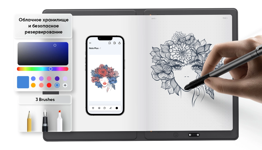Пишите так же естественно, как на любой бумаге формата A5 — ваши слова, эскизы и идеи фиксируются в реальном времени и превращаются в цифровые заметки.