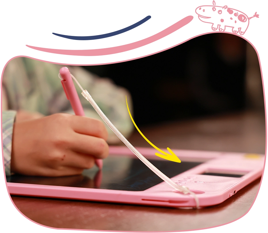 На верхнем правом углу доски расположен переключатель блокировки. При нажатии функция очистки экрана блокируется, что предотвращает случайное стирание и помогает ребёнку сосредоточиться на творческом процессе.