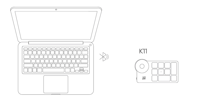 1. Переключить выключатель питания беспроводной клавиатуры быстрого доступа — индикатор медленно мигает синим, удерживать клавишу K11 в течение шести секунд для перехода в режим сопряжения — индикатор быстро мигает синим.