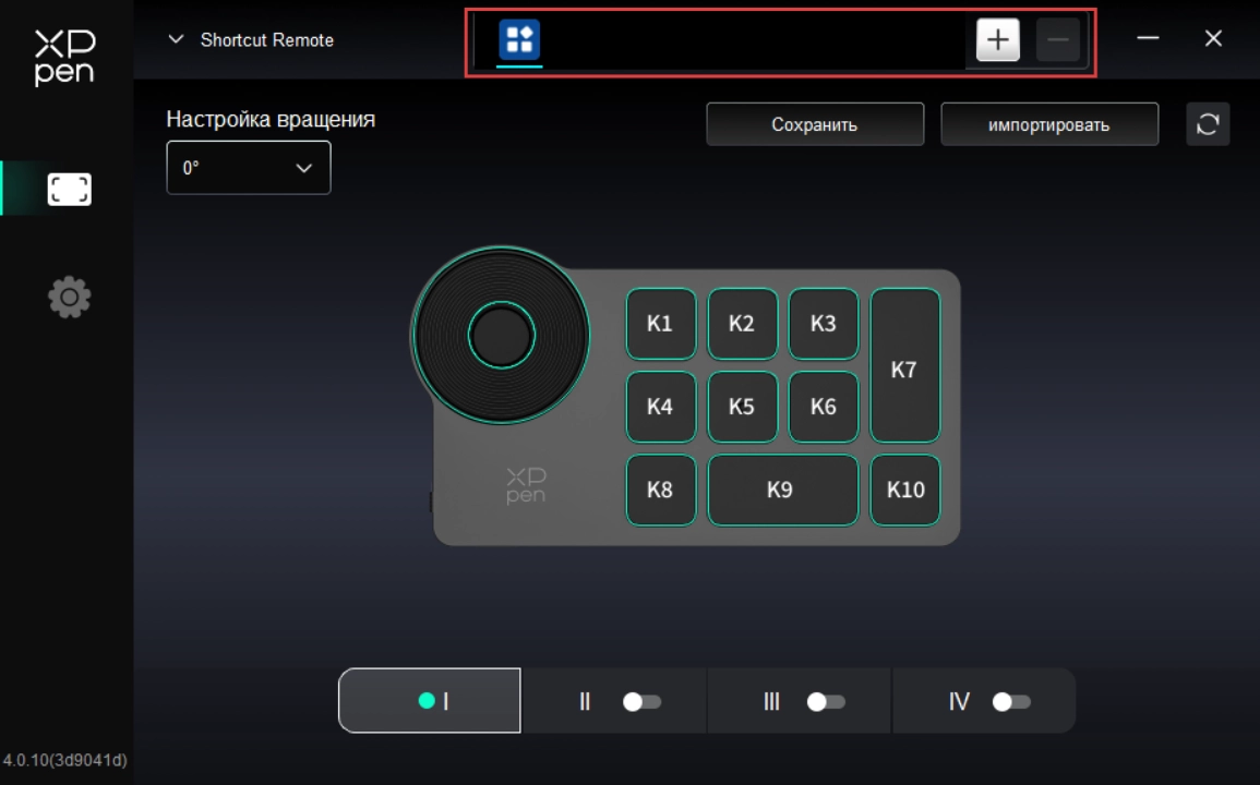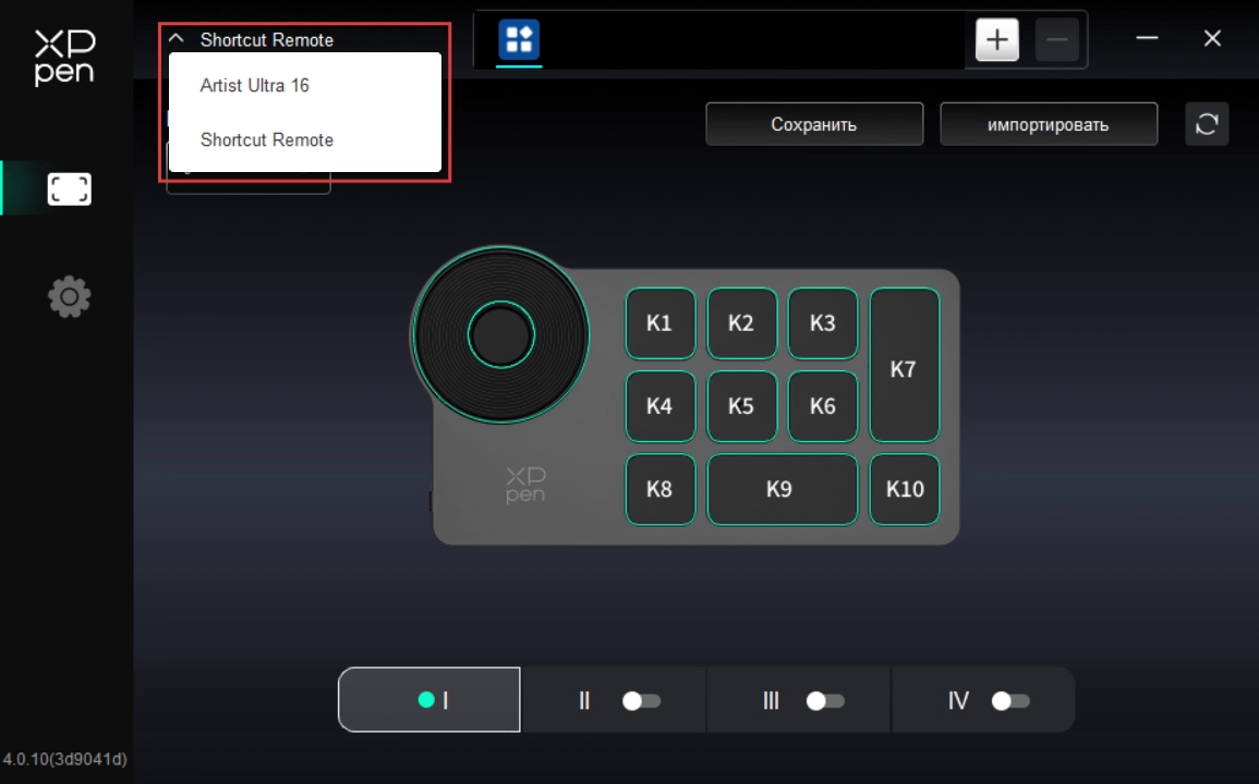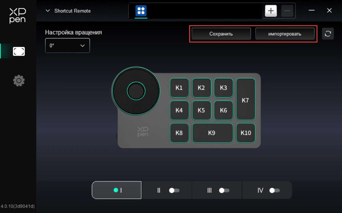 Импорт конфигурации, сохраненной в беспроводной клавиатуре быстрого доступа, в текущее выбранное приложение драйвера.
