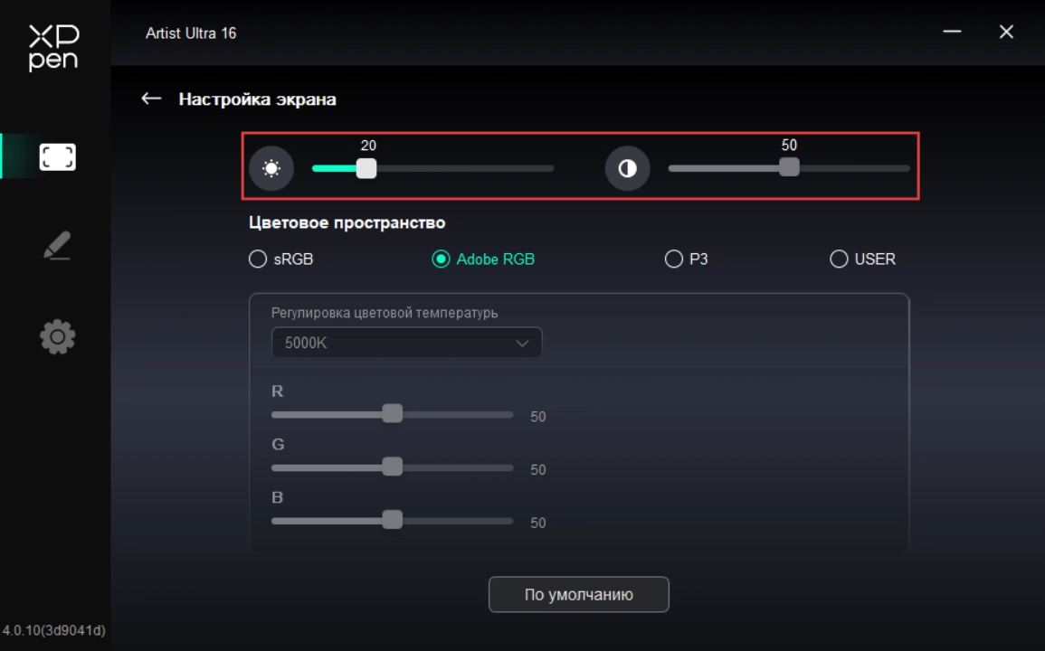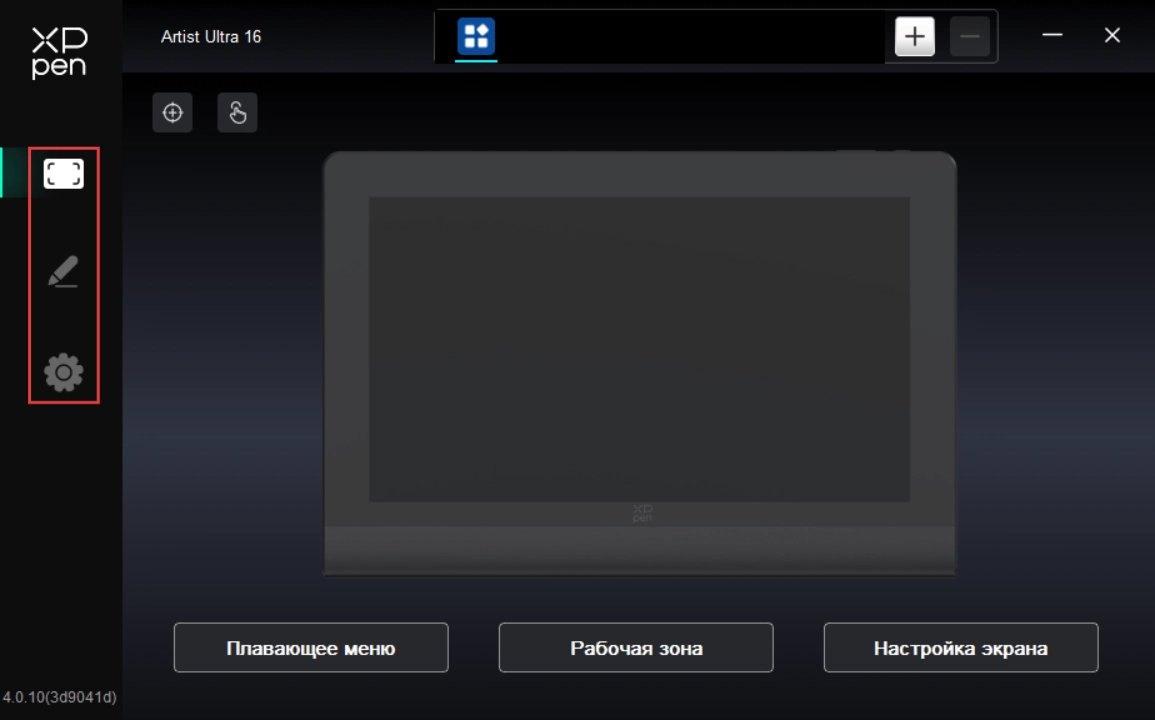 Нажатие значков слева от драйвера позволяет переключать функции драйвера для настройки параметров интерактивного дисплея, включая: