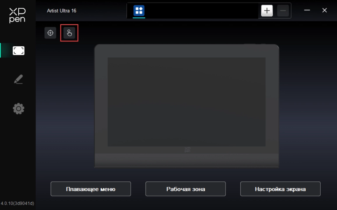 Значок в левом верхнем углу: фиксация позиции отображения, вход в настройки плавающего меню драйвера, закрытие плавающего меню.