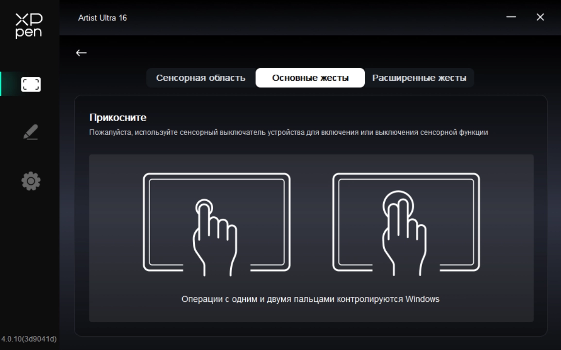 При включенной функции сенсорного управления можно использовать мультитач в Windows или macOS. Продукт поддерживает стандартные системные жесты, также можно настроить область касаний и пользовательские жесты через драйвер.