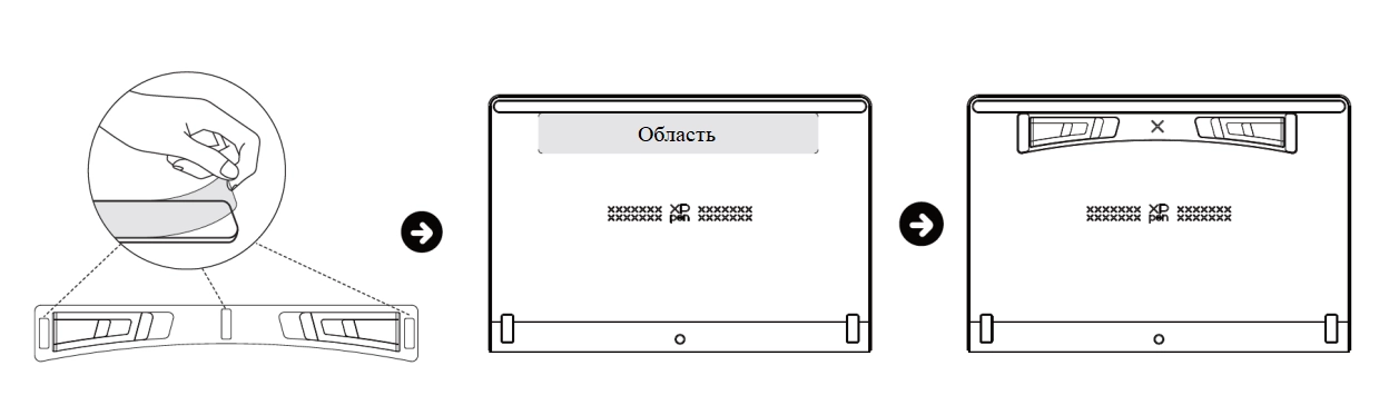 2. Совместить с областью разметки для крепления на задней части интерактивного дисплея, аккуратно прижать для фиксации.