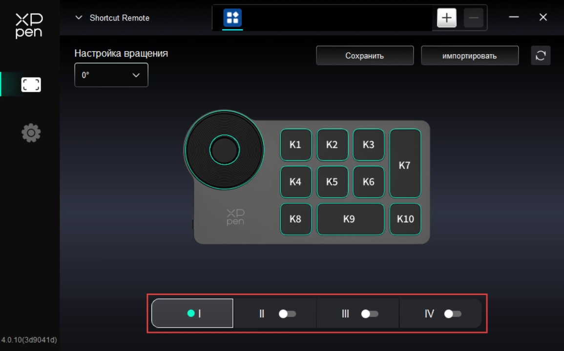 Примечание: используйте функции «Импорт» и «Сохранение» при проводном подключении. Конфигурации «Импорт» и «Сохранение» не включают функцию поворота и действительны только в одинаковых системах.