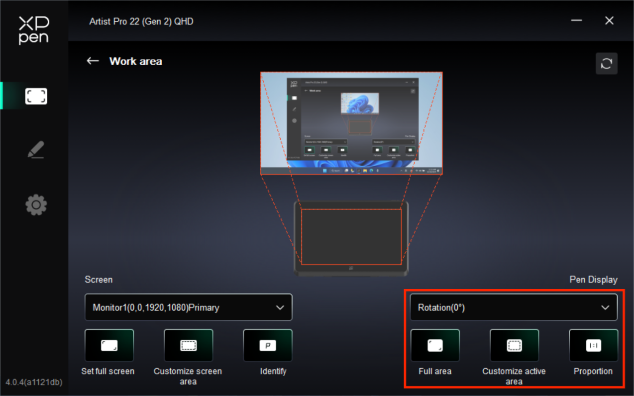 Нажимайте на значки в левом меню, чтобы переключаться между функциями драйвера. Сверху вниз опции обозначают настройки устройства, настройки стилуса и настройки драйвера.