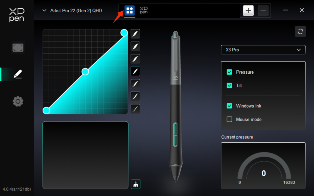6) Если нажим стилуса в драйвере в норме (Windows: убедитесь, что в настройках стилуса драйвера включено Windows Ink), запустите программное обеспечение для рисования и протестируйте ее еще раз.