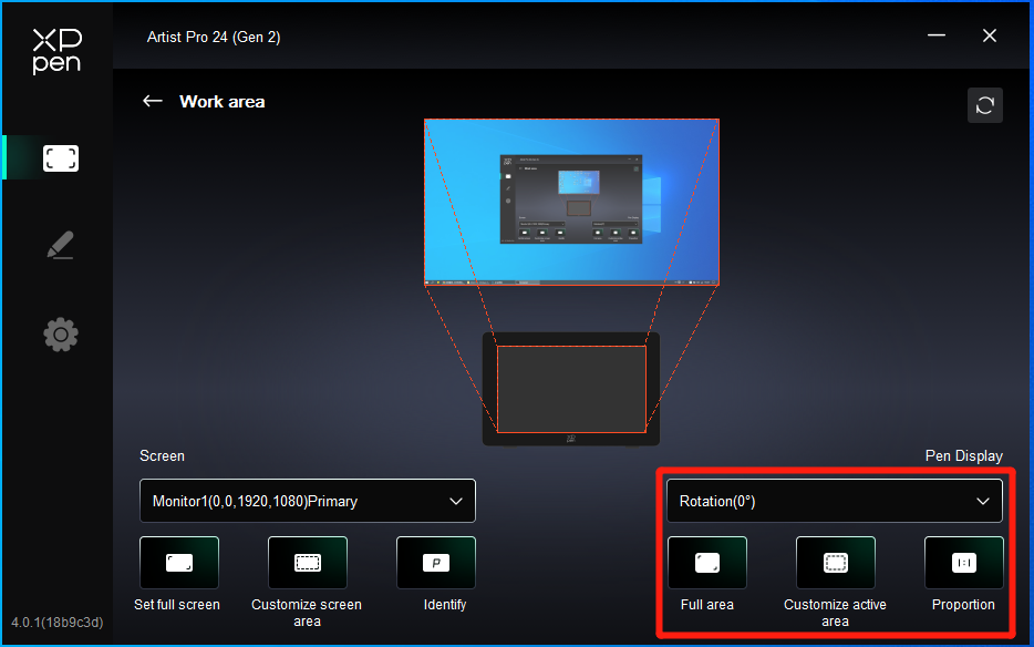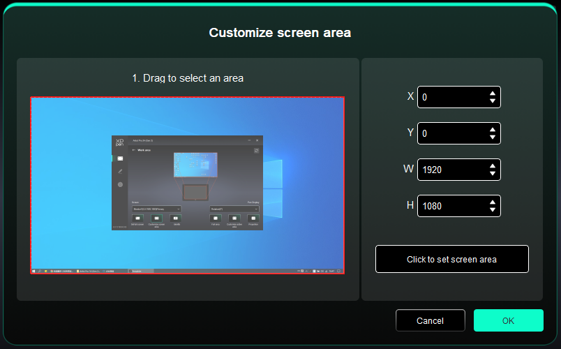 Держите стилус как обычно и нажмите на центр красного креста на мониторе, чтобы откалибровать смещение между стилусом и курсором.
