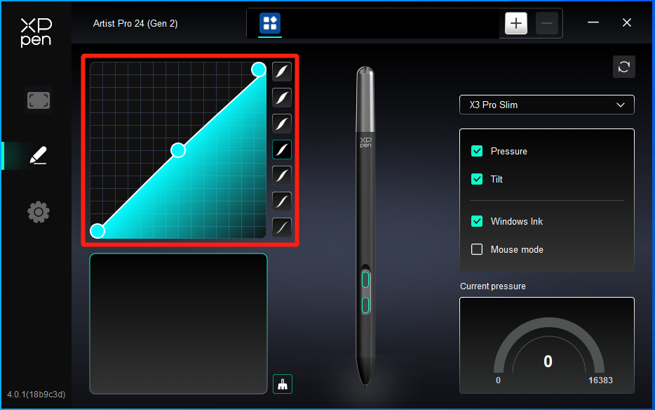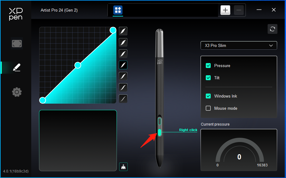 6) Если нажим стилуса в драйвере в норме (Windows: убедитесь, что в настройках стилуса драйвера включено Windows Ink), запустите программное обеспечение для рисования и протестируйте ее еще раз.