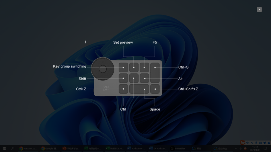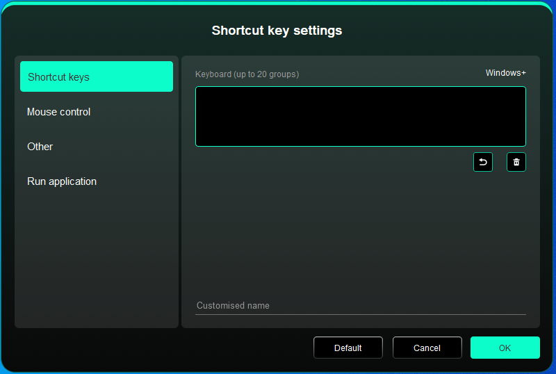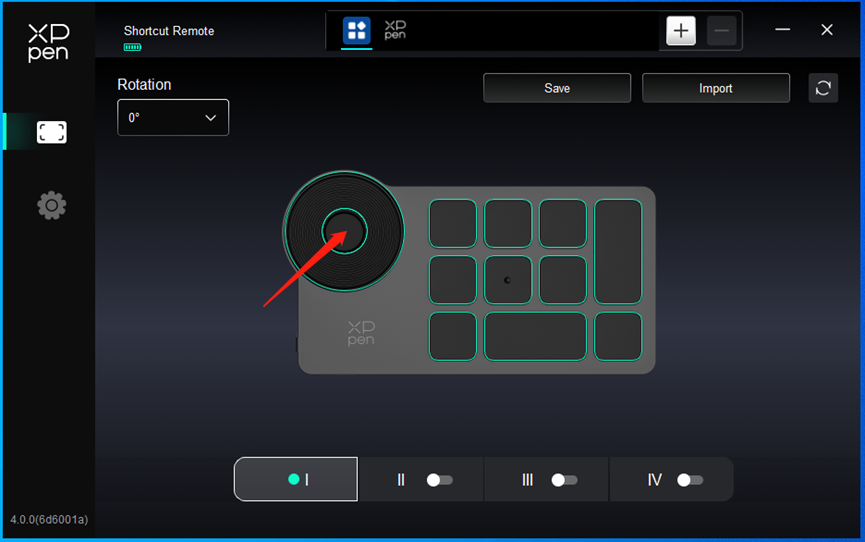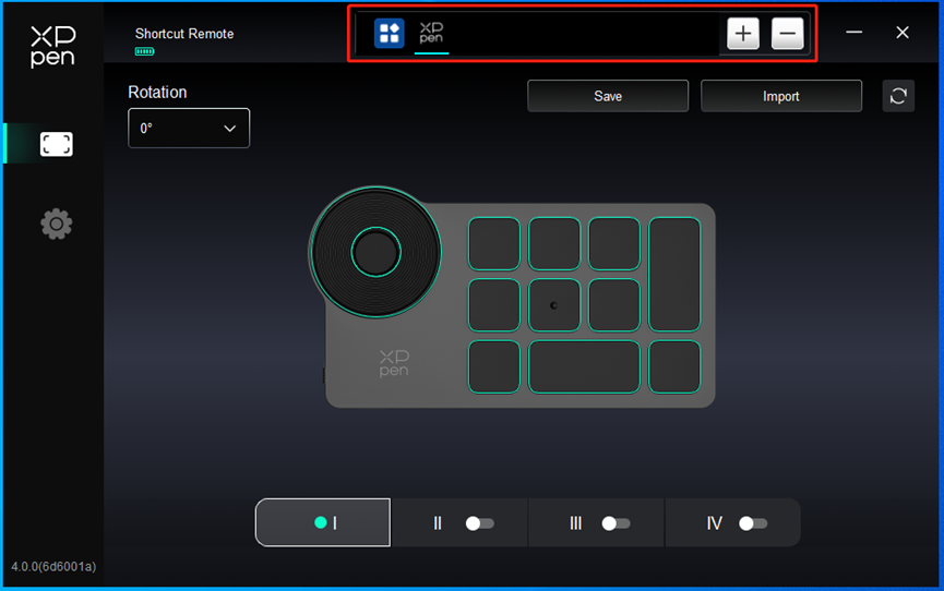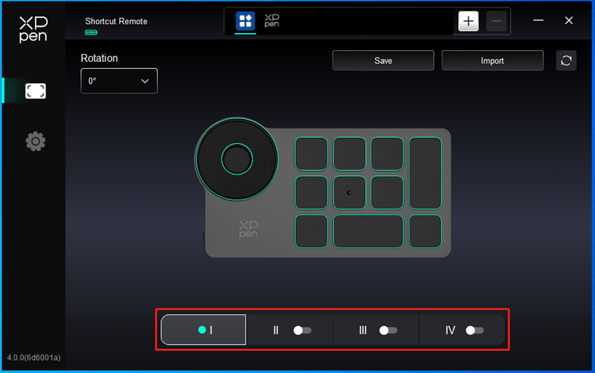 Драйвер предоставляет четыре группы горячих клавиш. Первая группа быстрых клавиш используется по умолчанию (не может быть отключена). Каждая группа кнопок может быть пользовательски настроена для различных функций. После включения можно переключаться между включенными группами с помощью "I/II/III/IV" (по умолчанию используется кнопка K1, которую можно настроить как другие кнопки).