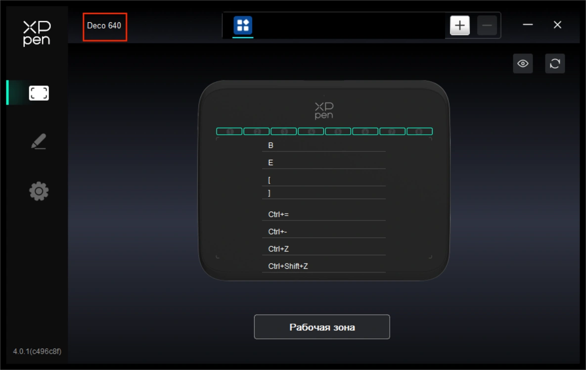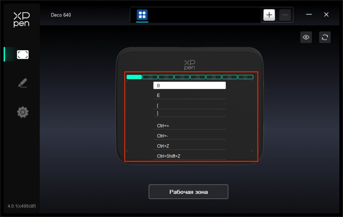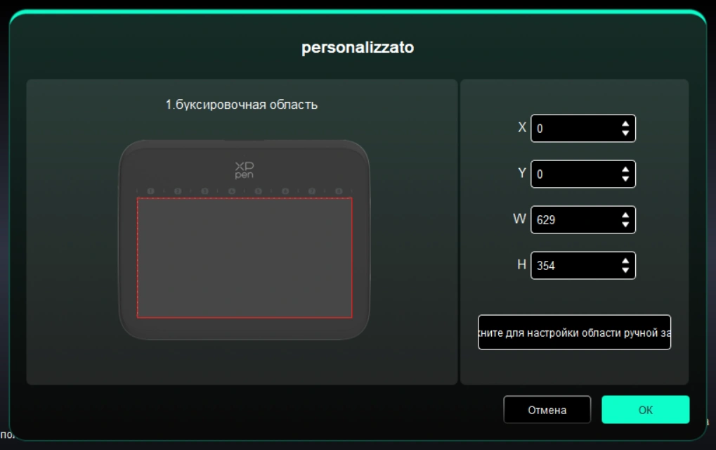 Драйвер позволяет настраивать рабочую область устройства следующими способами:
