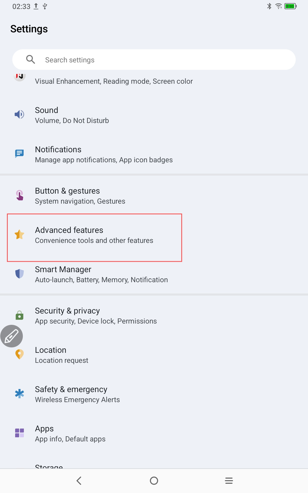 Шаг 2: Найдите одиннадцатый пункт "Расширенные функции", как показано ниже: