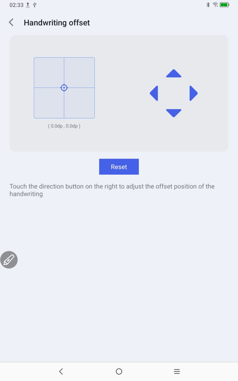 Если есть смещение позиции между кончиком пера и фактической точкой касания, вы можете включить эту функцию и нажать клавишу направления справа для регулировки положения смещения кончика пера.