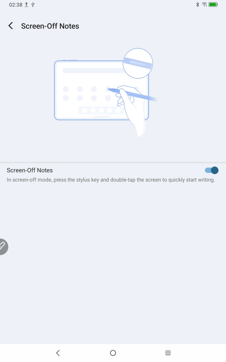 Система автоматически включит функцию заметок при выключенном экране для использования.