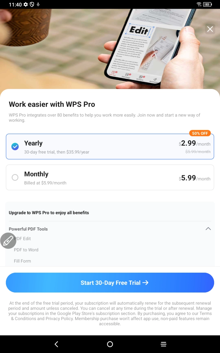 Шаг 5: Выберите годовую подписку и найдите вариант 30-дневной пробной версии. После успешной подписки активируется 30-дневная пробная версия членства.