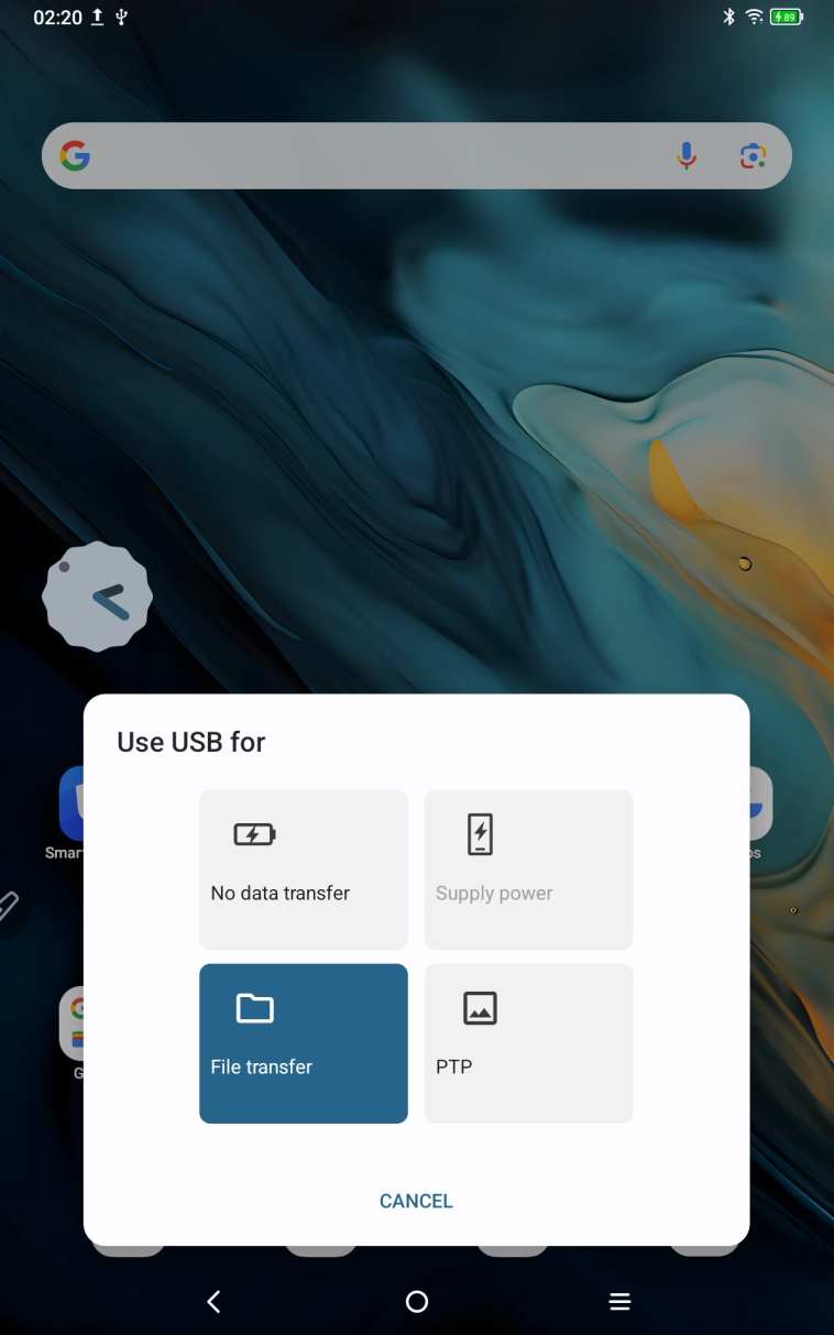Шаг 2: На планшете появится всплывающее окно с предложением выбрать способ использования (передача файлов или передача изображений)