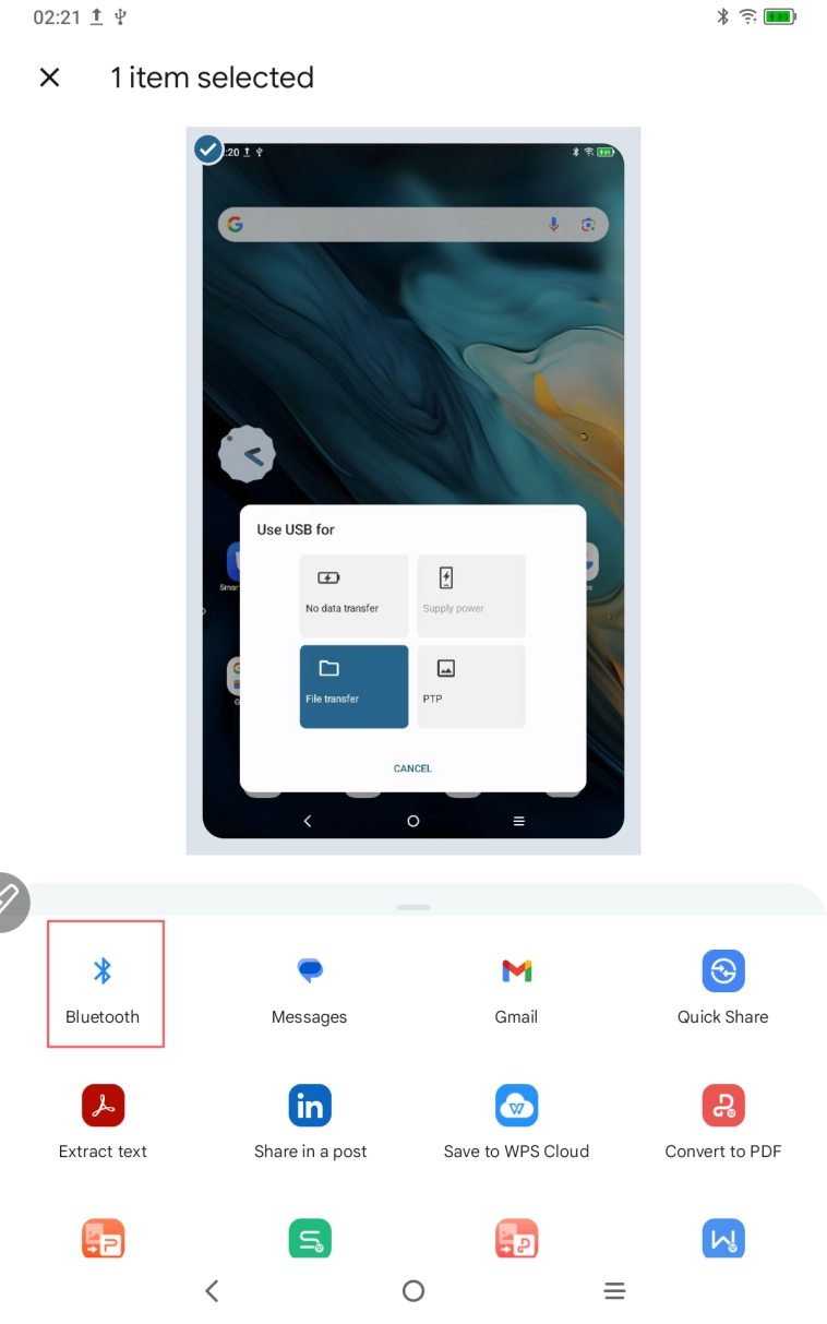 Шаг 3: Выберите файл, который хотите передать на планшете, и выберите "Bluetooth" для общего доступа, как показано ниже.